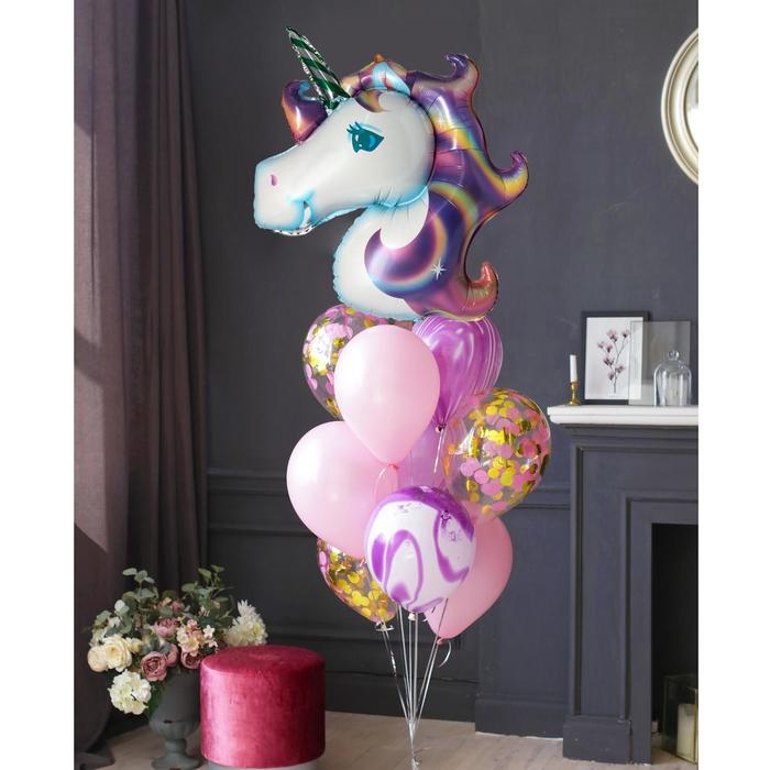 Набор воздушных шаров "Единорог", с конфетти, латекс, фольга, 10 шт.