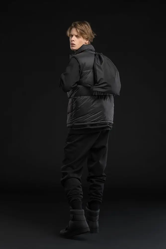 Прочный и вместительный трансформер — шопер и рюкзак на шнурках — разработан в рамках единой коллекции одежды и аксессуаров, поэтому легко комбинируется с ее элементами. Специально спроектированные лекала и технологии пошива открывают простор для любых вариантов кастомизации и нанесения изображений. На видимой части изделий нет лейблов с айдентикой бренда, а название бренда с уходника легко удалить.