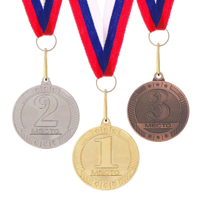 Медаль призовая 050, d= 7 см. 3 место, триколор. Цвет бронза. С лентой