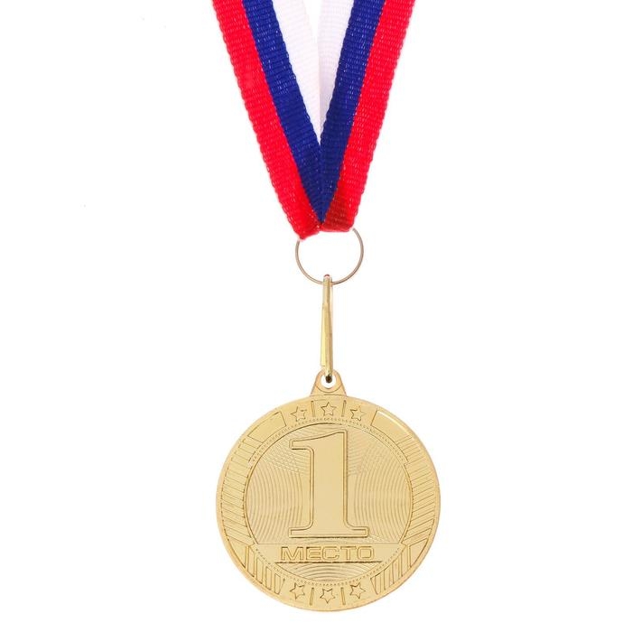 Медаль призовая 013, d= 5 см. 1 место, триколор. Цвет золото. С лентой