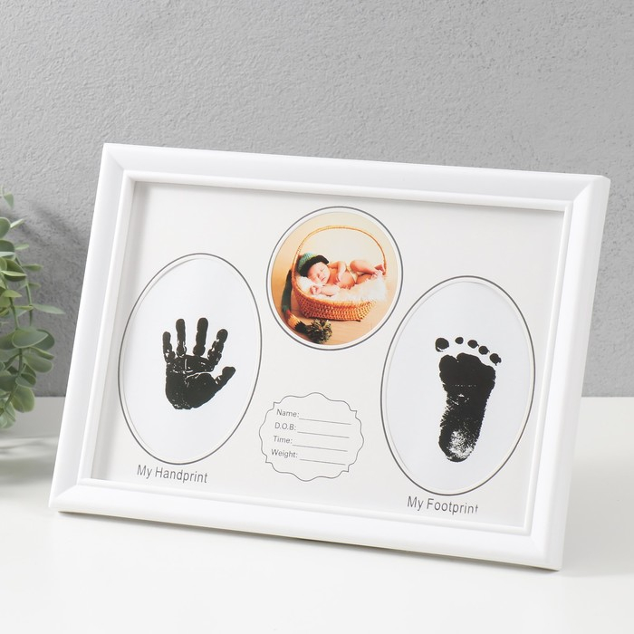 Фоторамка пластик на 2 фото 7,5х10 см с штемп.подушкой "Малыш" белая 22х27 см