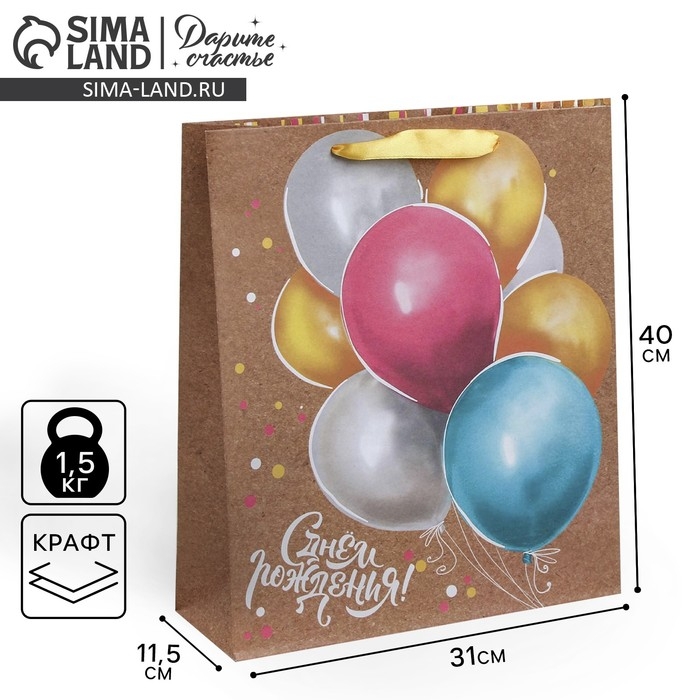 Пакет подарочный крафтовый вертикальный, упаковка, «Весёлый праздник», 40 х 31 х 11.5 см