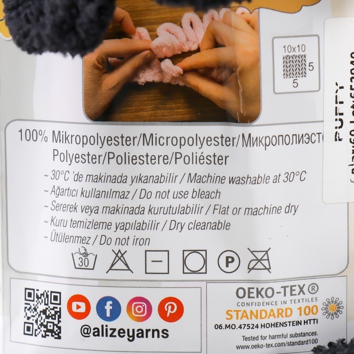 Пряжа "Puffy" 100 % микрополиэстер 9м/100г (60 чёрный)