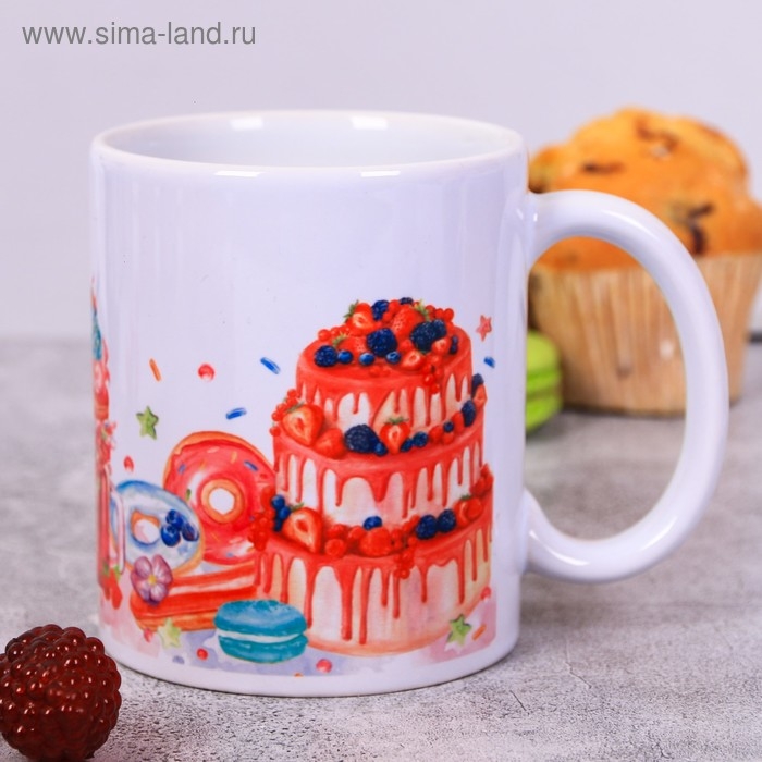 Кружка изготовлена из керамики. Рисунок нанесён методом сублимации, при котором краска проникает в верхний слой изделия, поэтому изображение получается стойким.