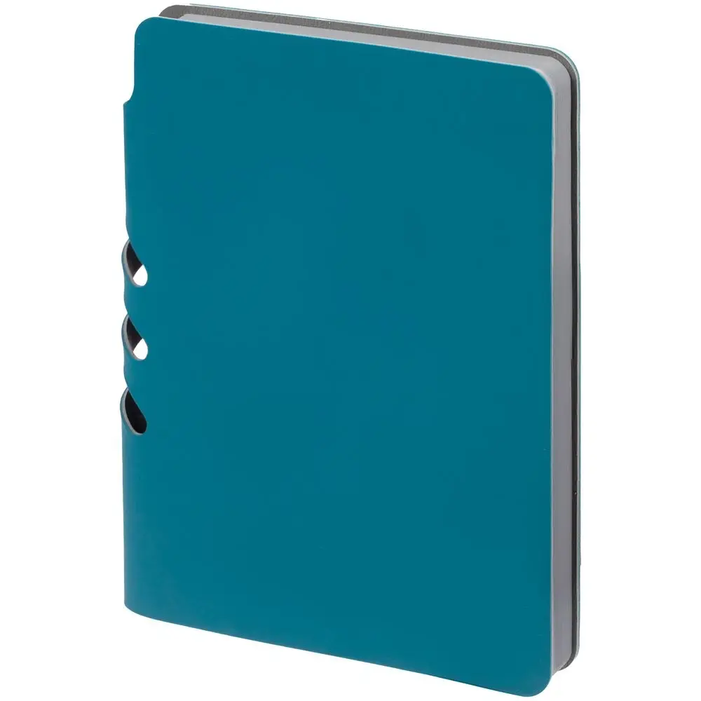 Ежедневник с гибкой обложкой выполнен из материала Soft Touch, цвет морской волны II и серого Latte (внутренняя часть обложки).