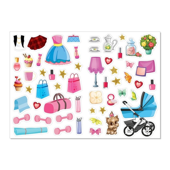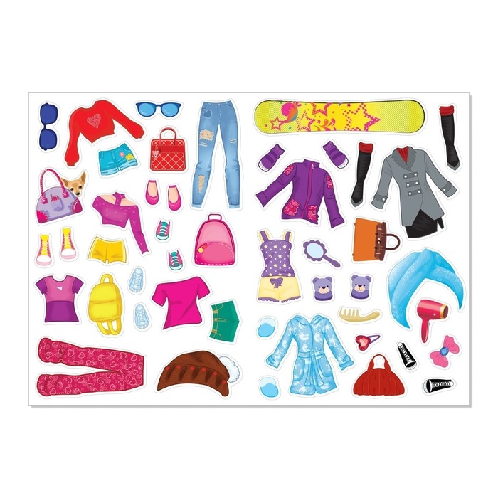 В книге ребёнка ждёт более 100 цветных наклеек с одеждой и аксессуарами для кукол.
