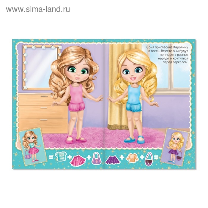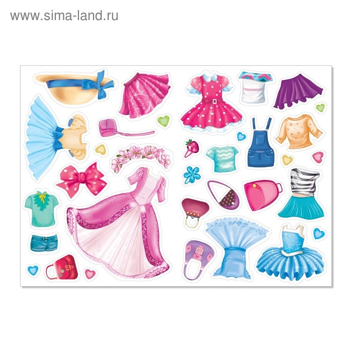 В книге малыша ждёт более 100 цветных наклеек с одеждой и аксессуарами для кукол.