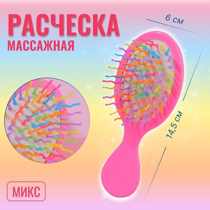 Расчёска массажная, 6,5 × 21 см, цвет МИКС