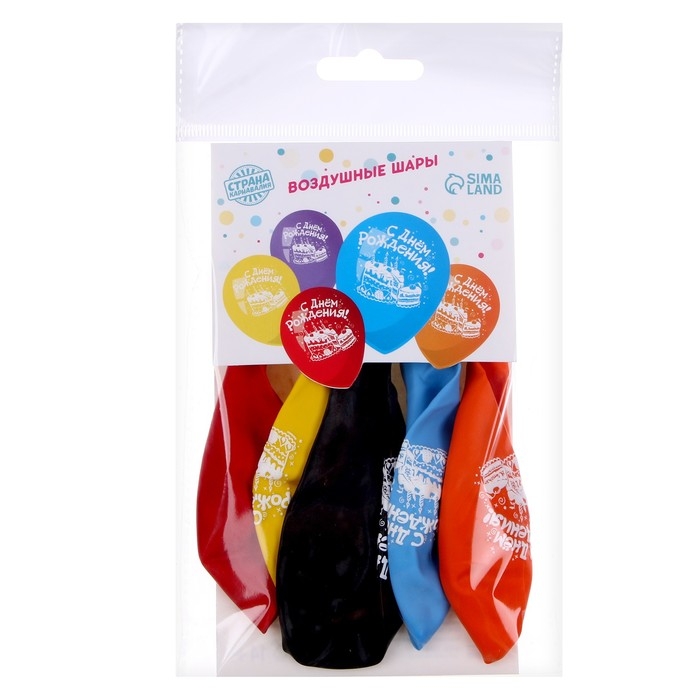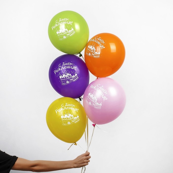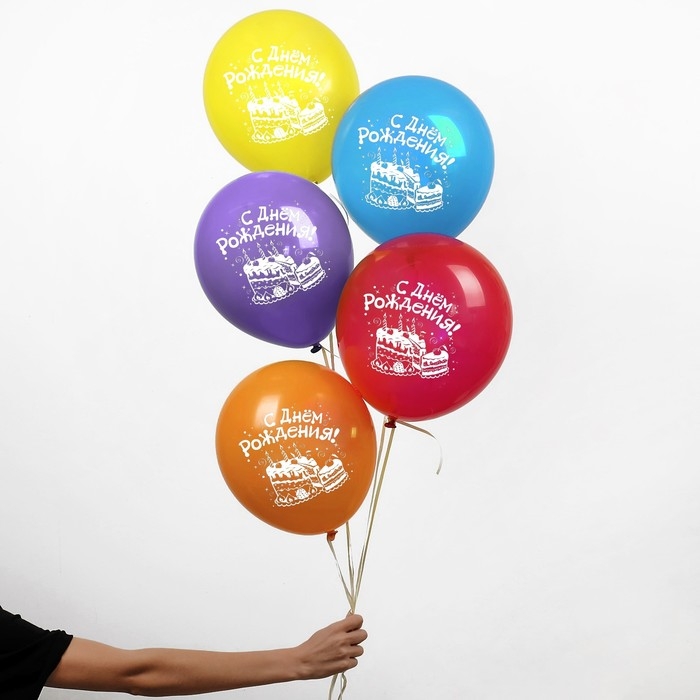 Воздушный шар латексный 12" «С днём рождения. Торт», 5 шт.