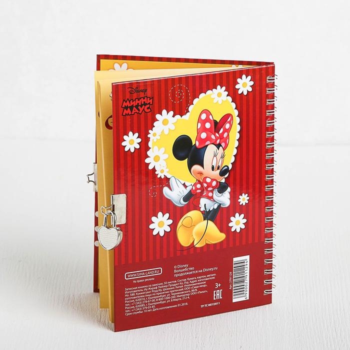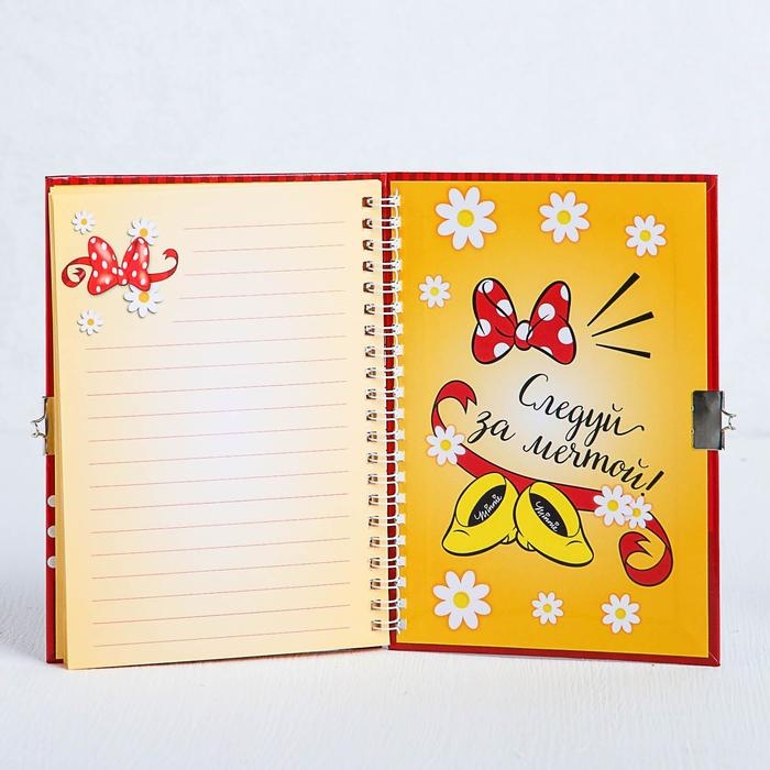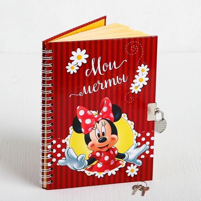 Записная книжка А5 на замочке "Мои мечты", 50 листов, Минни Маус
