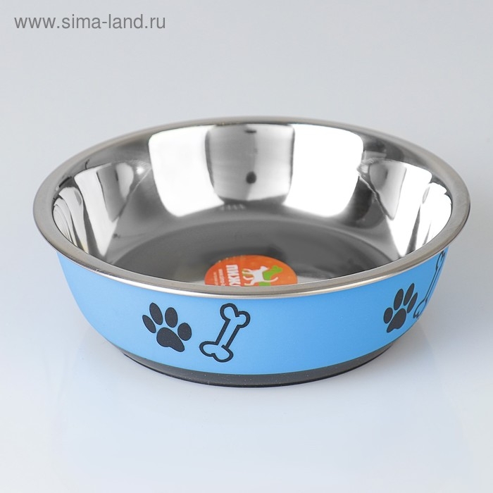Миска округлая с нескользящим основанием и принтом, 450 мл, голубая