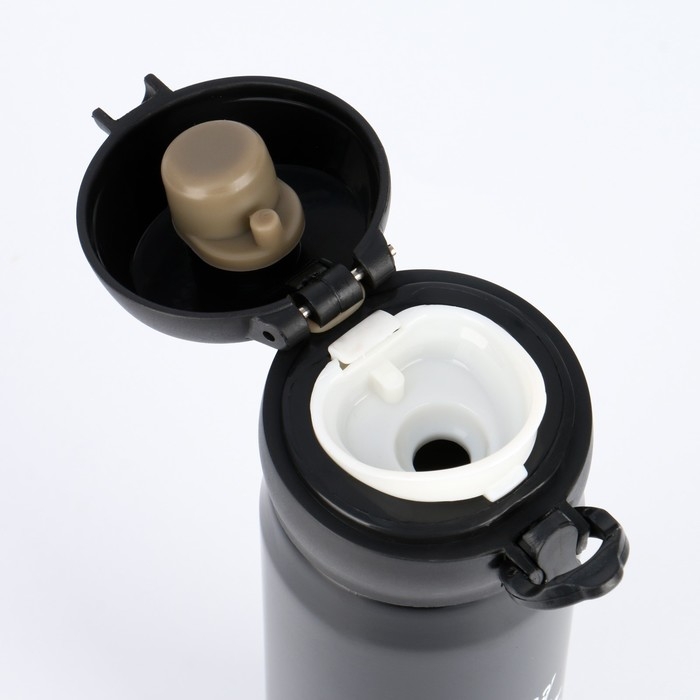 Термос (термокружка) сделан из нержавеющей стали 18/8, сконструирован по вакуумной технологии, с двойной стенкой, следовательно, долго держит тепло и не проливается. Снабжен откидывающейся крышкой, изготовленной из экологичного пищевого пластика, имеется кнопка, позволяющая с легкостью использовать термос одной рукой.