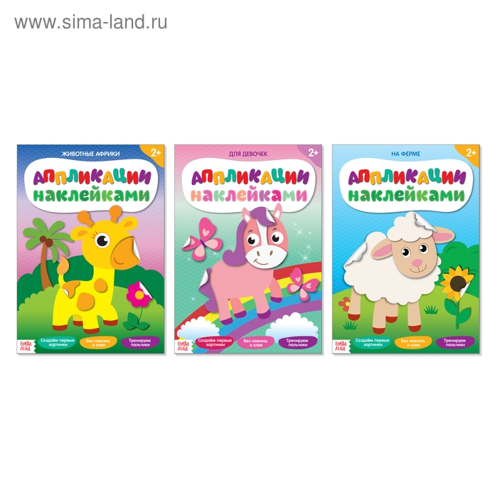 Аппликации наклейками набор «Для девочек», 3 шт. по 12 стр.