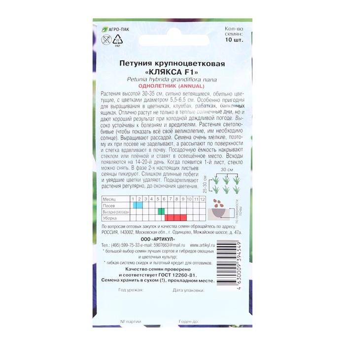 Семена цветов Петуния крупноцветковая «Клякса» F1, О, 10 шт.