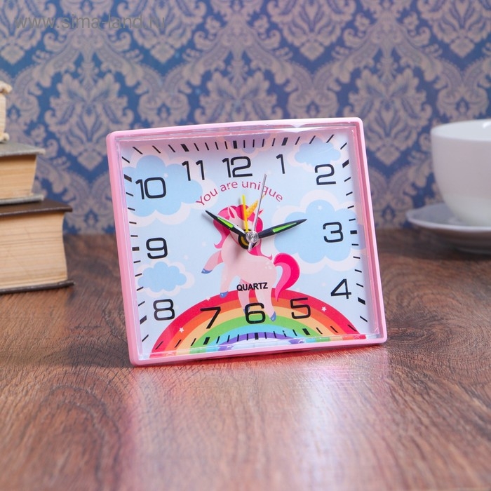 Часы настольные будильник детский "Единорог", 12.5 х 10.5 см