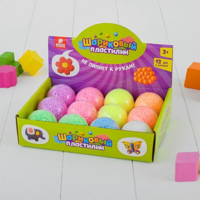 Шариковый пластилин - необычный пластилин состоит из маленьких шариков, напоминающих искрящиеся бусинки, соединенных тончайшими клеевыми нитями… Шариковый пластилин очень легкий, воздушный и совсем не липнет к рукам. Цвета легко смешиваются друг с другом, образуя разноцветную шариковую массу. Готовые поделки из шарикового пластилина высыхают на воздухе в течение 24 часов.