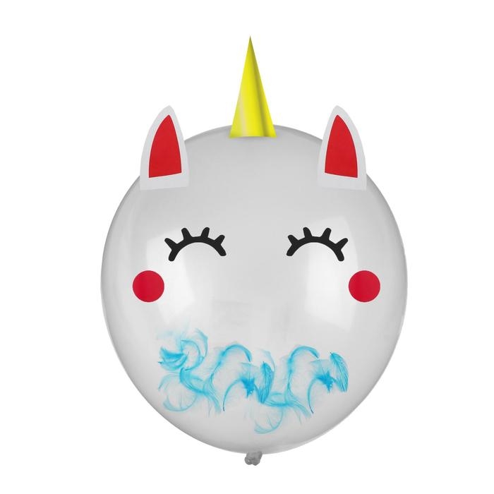 Шар латексный 18" "Единорог", 1 шт., наклейки, перья