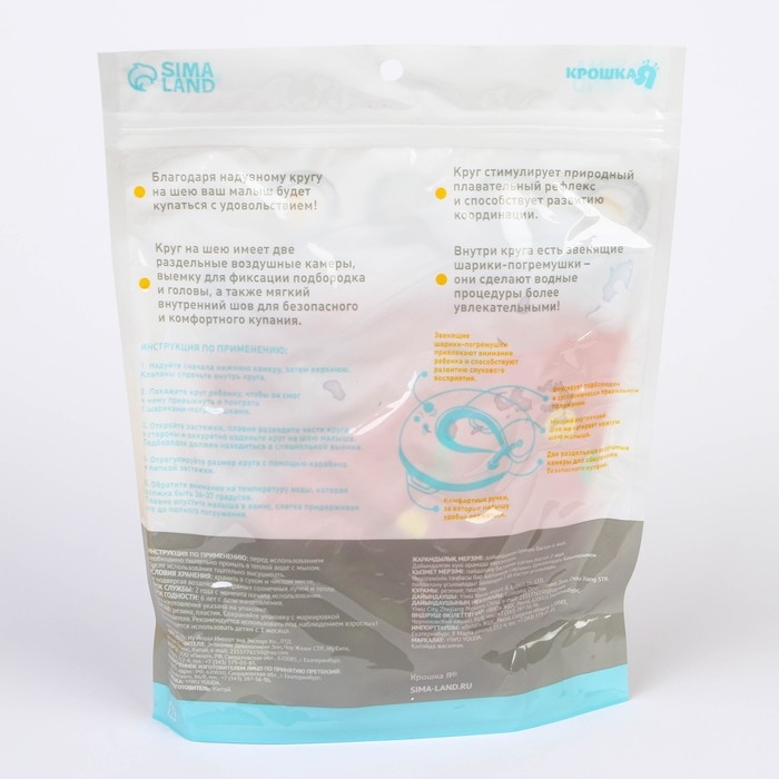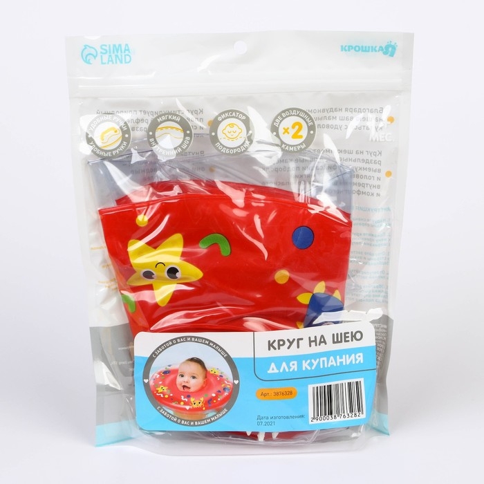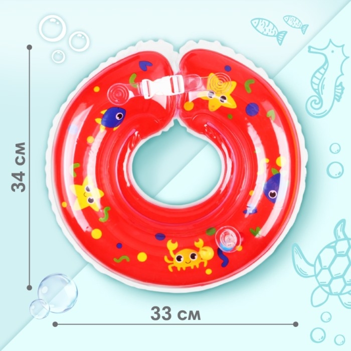 Круг для плавания новорожденных на шею «Давай купаться», надувной, с ручками, цвет красный, Крошка Я