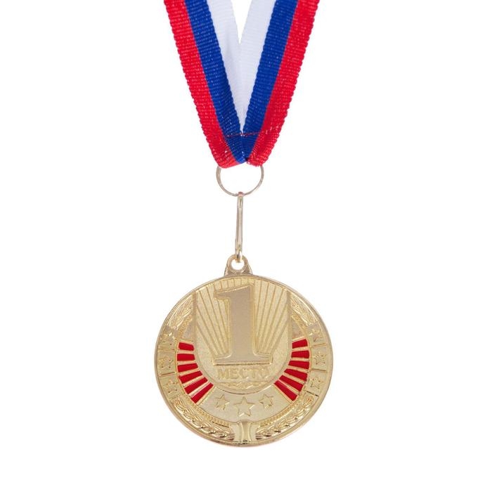 Медаль призовая 013, d= 5 см. 1 место, триколор. Цвет золото. С лентой