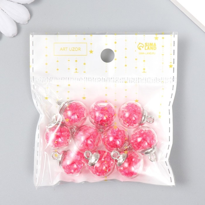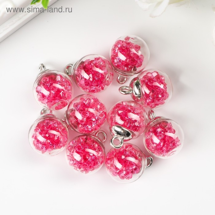 Подвеска декоративная для творчества стекло "Шар - камешки" ярко-розовая d=1,6см набор 10 шт