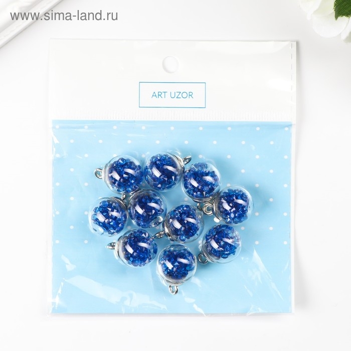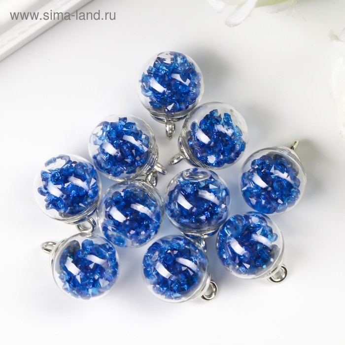 Подвеска декоративная для творчества стекло "Шар - камешки" синяя d=1,6 см набор 10 шт