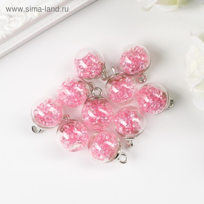 Подвеска декоративная для творчества стекло "Шар - камешки" розовая d=1,6 см набор 10 шт