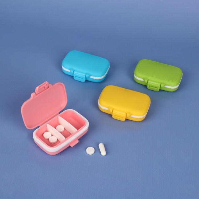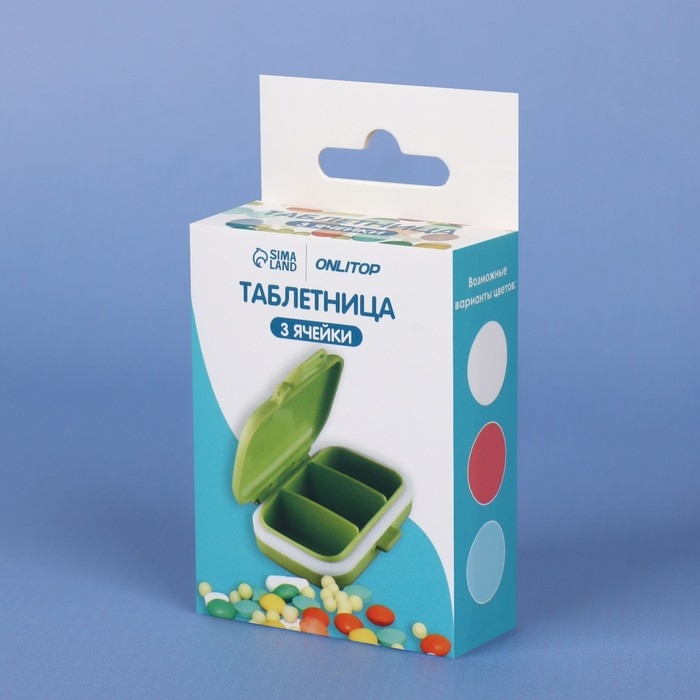 Таблетница, 8 × 6 × 3 см, 3 секции, цвет МИКС