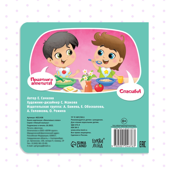 Картонная книга «Вежливые слова», 10 стр.