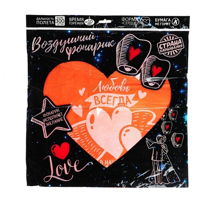 Небесный фонарик «Любовь в сердцах», сердце цвета МИКС