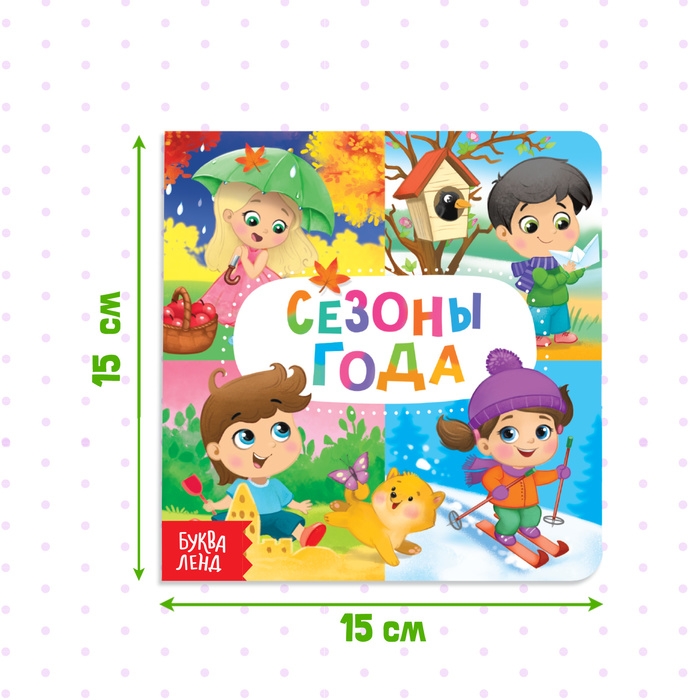 Картонная книга с яркими картинками продемонстрирует малышу разницу между временами года. Ребёнок без труда запомнит, что весной тает снег и бегут ручьи, а зимой можно кататься с горок, лепить снеговиков и играть в снежки.