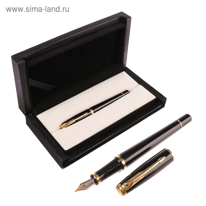 Ручка подарочная, перьевая, в кожзам футляре, VIP, корпус чёрный