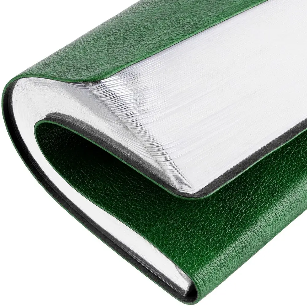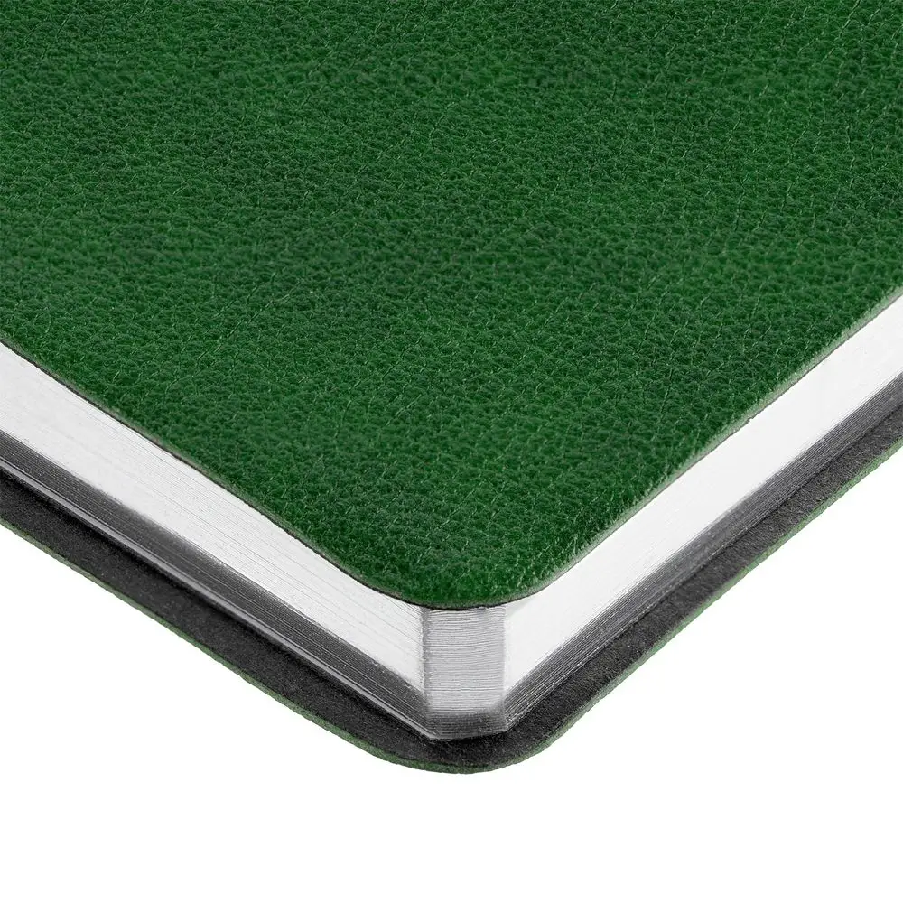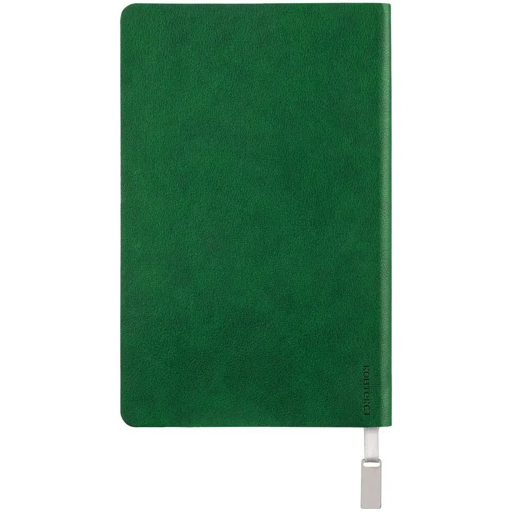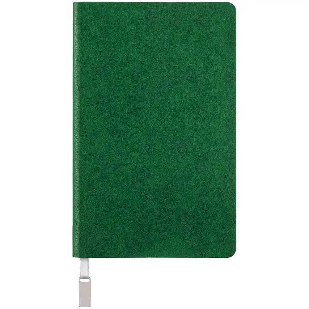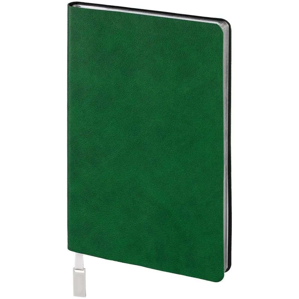 Ежедневник с гибкой обложкой, выполнен из материала Petrus, зеленый FF, дополнен серым ляссе с металлическим шильдиком.