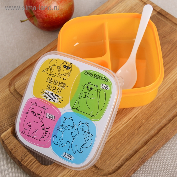 Данный прямоугольный ланч-бокс обладает объемом в 400 мл. Три секции позволяют удобно размещать различные виды пищи, сохраняя их свежесть и вкус.