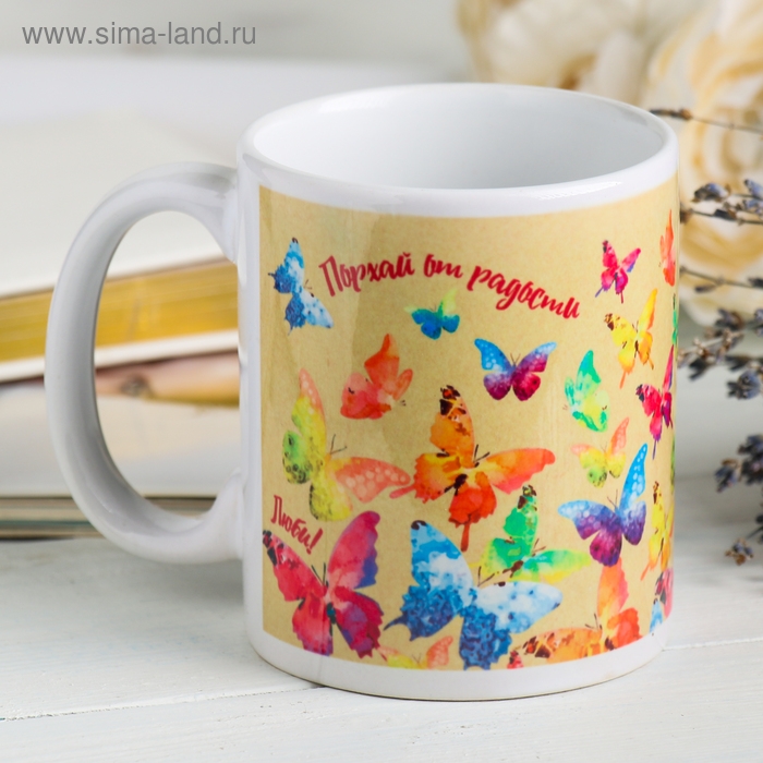 Кружка сублимация "Порхай от радости" бабочки, 320 мл
