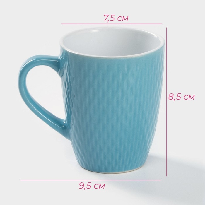 Великолепный голубой цвет кружки не только радует глаз, но и сохраняет свою насыщенность даже при длительном использовании. Благодаря рельефной текстуре поверхность кружки устойчива к сколам, а продуманный дизайн обеспечивает удобство использования. Вы можете спокойно использовать её в посудомоечной машине и микроволновой печи, что делает уход за изделием невероятно простым и удобным.