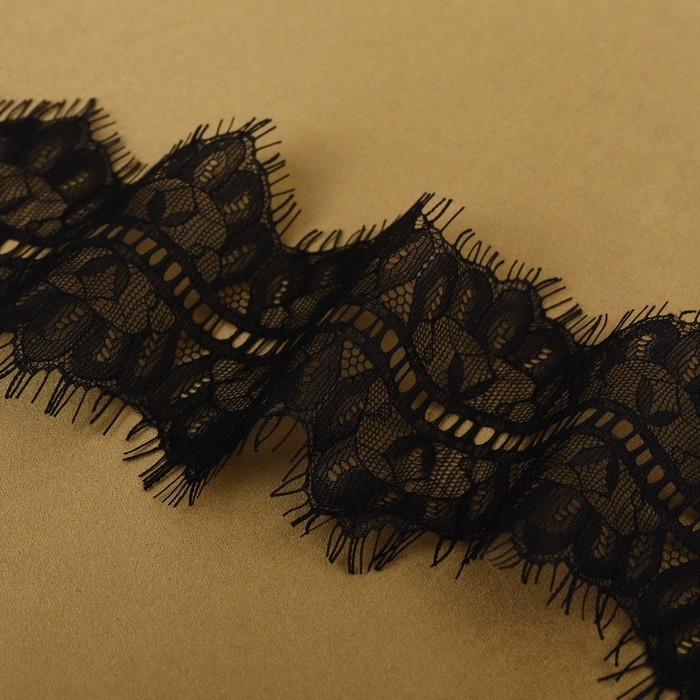 Кружево реснички, 85 мм × 9 ± 0,5 м, в бобине 3 шт по 3 м, цвет чёрный