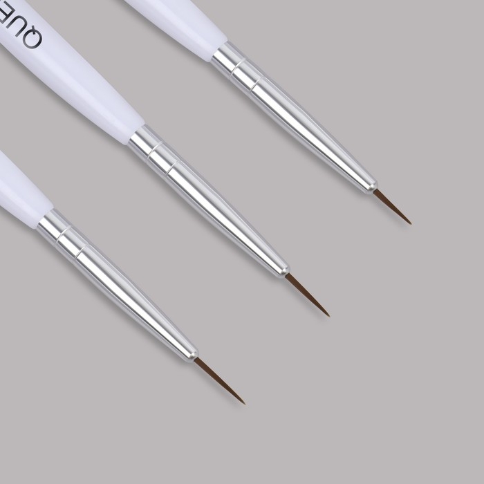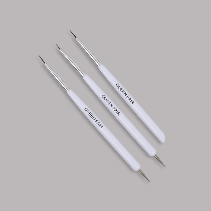 Для создания различных дизайнов используются специальные кисти для рисования на ногтях, отличающиеся формой, длиной и жесткостью ворса. Кисточка служит для выполнения мелкого рисунка. Краска набирается на кончик, и кисть идёт практически перпендикулярно поверхности.