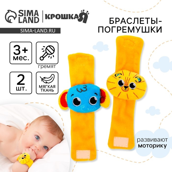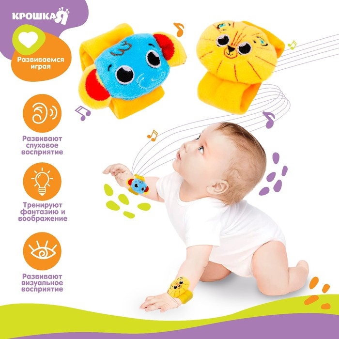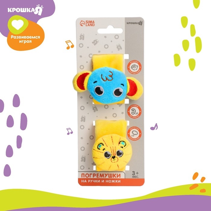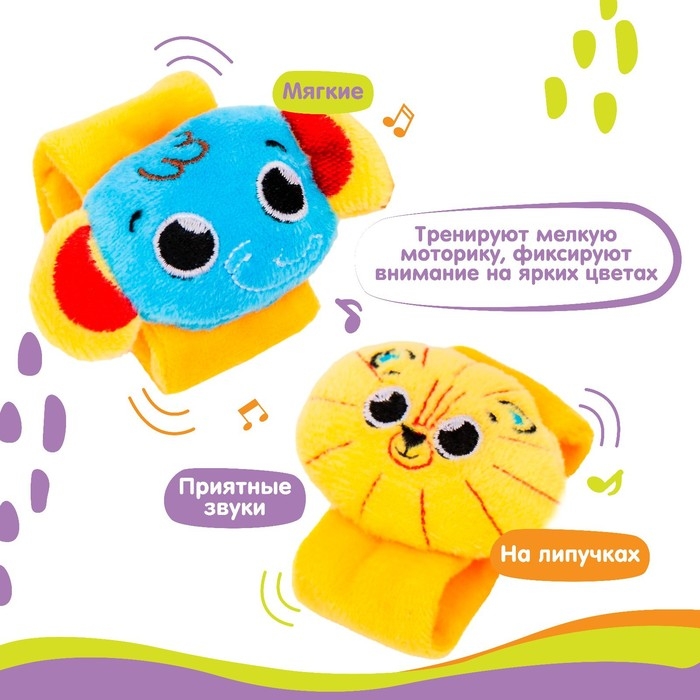 Набор браслеты - погремушки «Котик и рыбка», 2 шт, Крошка Я