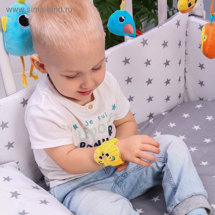 Развивающая игрушка выполнена в виде браслетика на липучке. В комплект входят две штуки. Их можно надеть малышу на ручки или ножки. Звуковые элементы будут греметь, когда непоседа сменит положение тела.