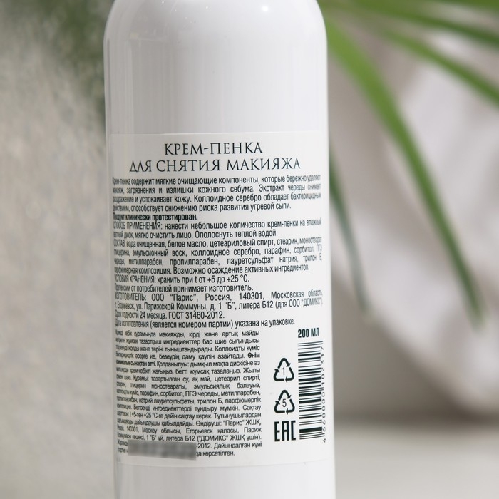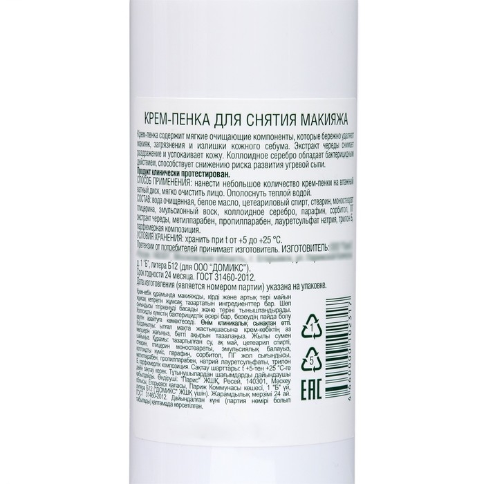 Крем-пенка для снятия макияжа Domix с чередой и наносеребром, 200 мл