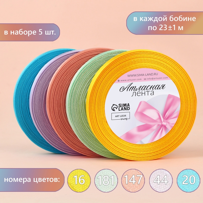 Набор атласных лент «Весенний», 5 шт, размер 1 ленты: 10 мм × 23 ± 1 м