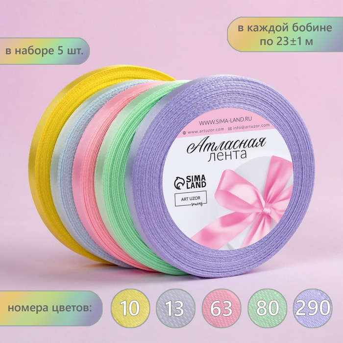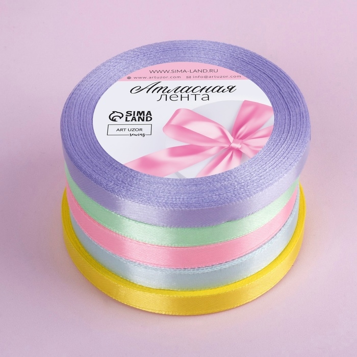 Набор атласных лент «Нежный», 5 шт, размер 1 ленты: 10 мм × 23 ± 1 м