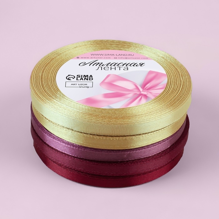 Атласная лента гладкая и приятная на ощупь. Используйте её для отделки изделий, украшения подарков, в свадебном оформлении, а также в скрапбукинге и канзаши.