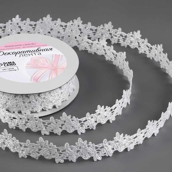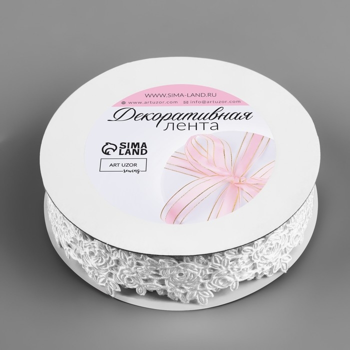 Лента фигурная «Розы», 25 мм, 9 ± 0,5 м, цвет белый