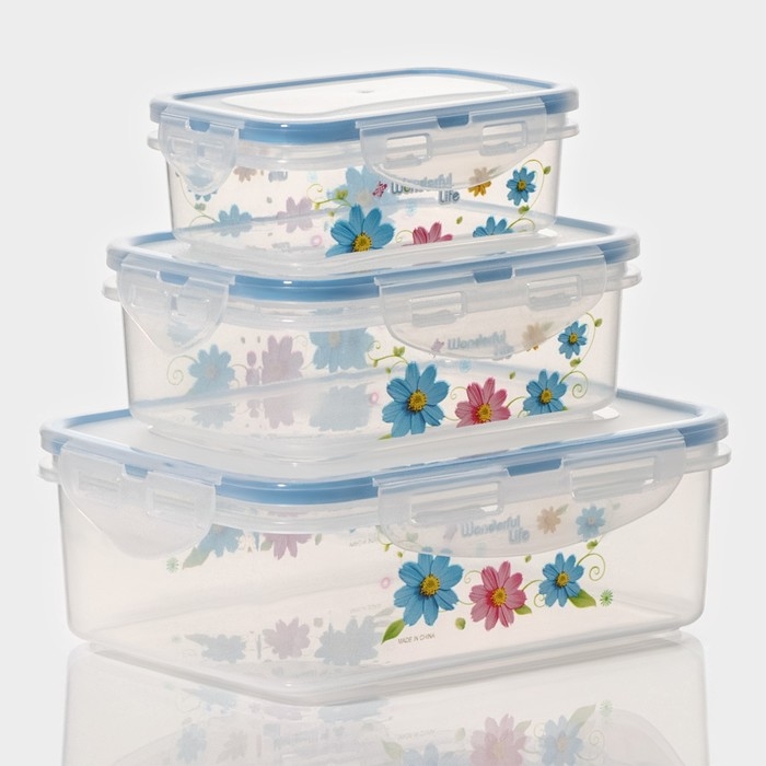 Набор ланч - боксов пластиковых прямоугольных «Полянка», 3 шт: 150 мл, 300 мл, 500 мл, цвет МИКС