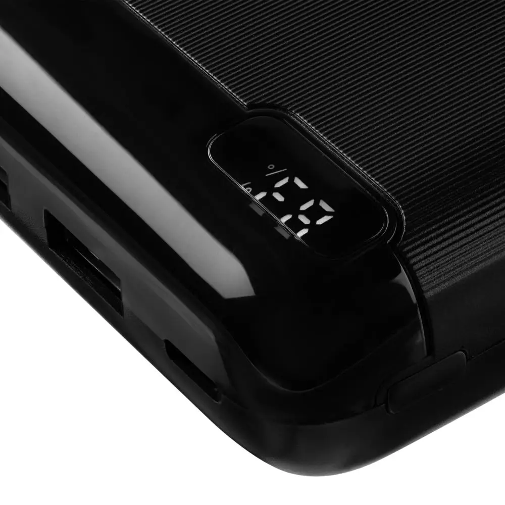 Аккумулятор со входными разъёмами Type-C и Micro USB, а также удобным индикатором заряда в процентах.