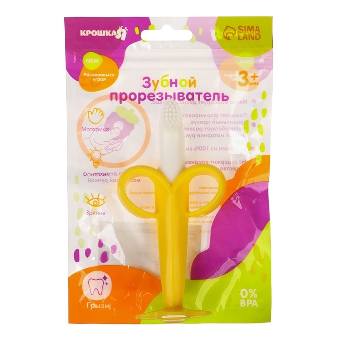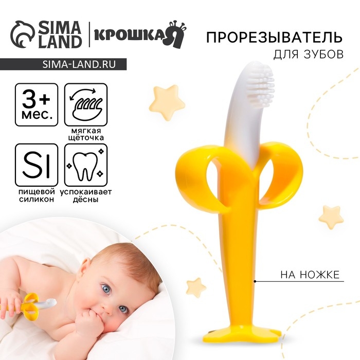 Прорезыватель - массажер для зубов «Банан», силиконовый, на присоске, щеточка, Крошка Я