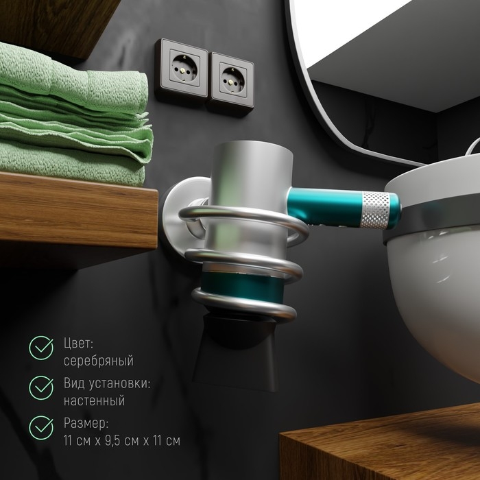 Держатель для фена, 11×9,5×11 см, алюминий