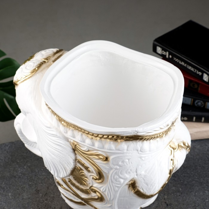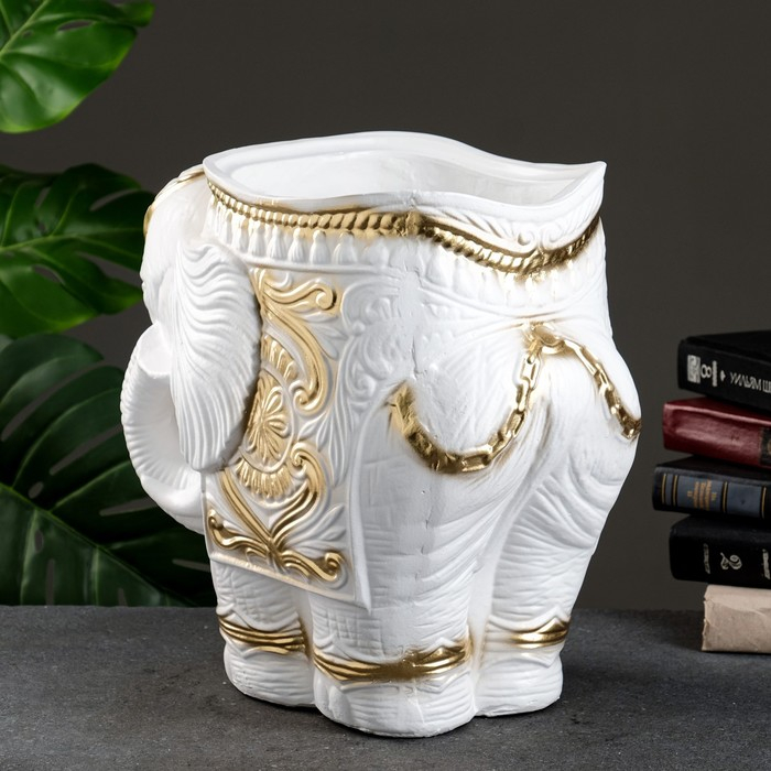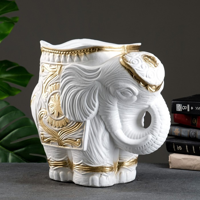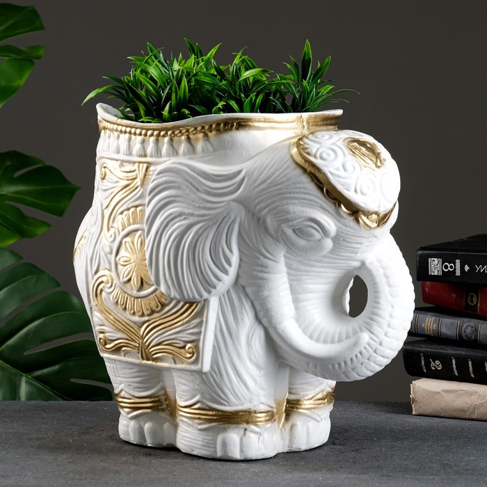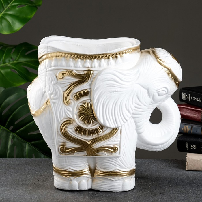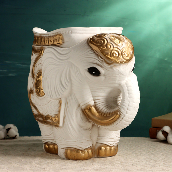 Фигурное кашпо "Слон средний", бело-золотой 6 л/ 35х22х36см