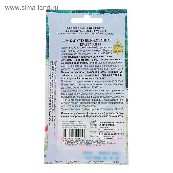 Семена Капусты белокочанной "Краутман", F1, 11 шт.